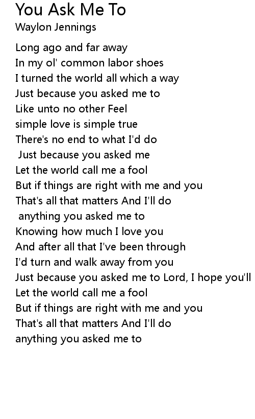 Just because you asked me to Lord, I hope you'll never do |