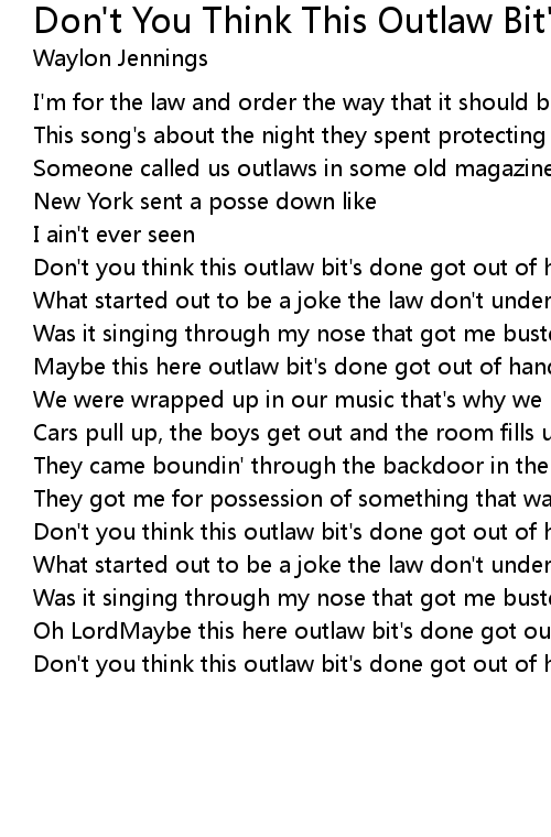 Don't You Think This Outlaw Bit's Done Got Out Of Hand Lyrics