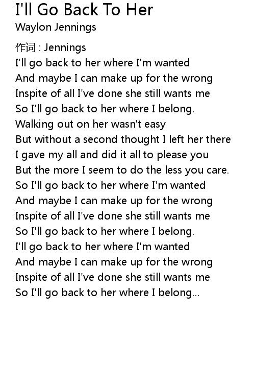 | So I'll go back to her where I belong... |