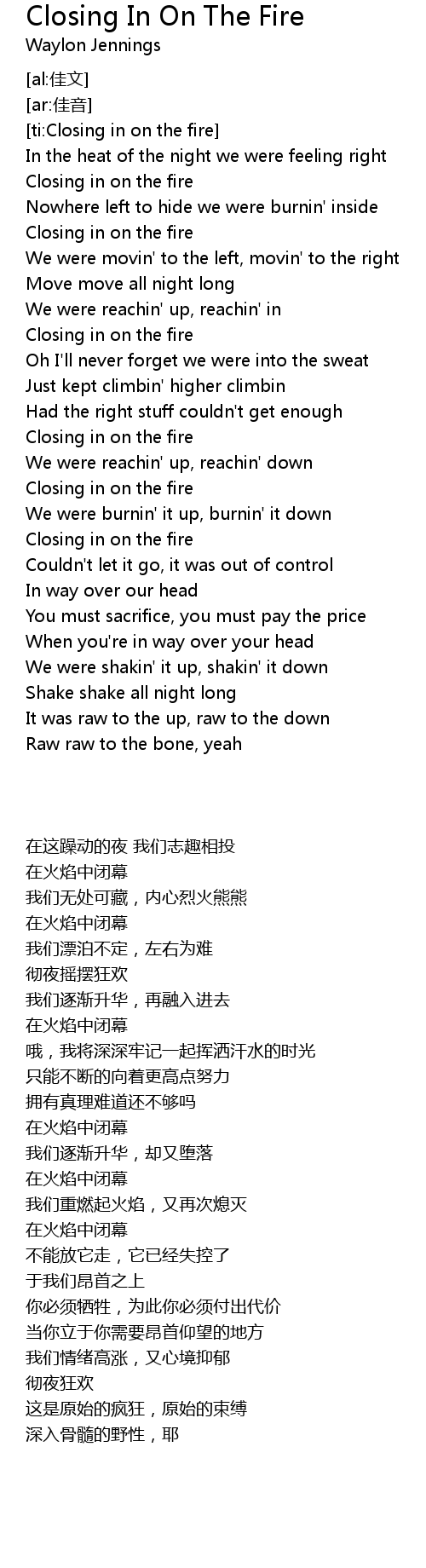 | [ti:Closing in on the fire] | |
