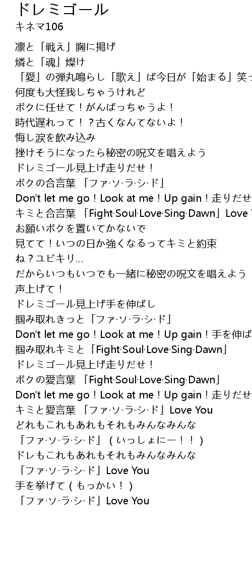 | [00:52.19] | ドレミゴール見上げ走りだせ! |