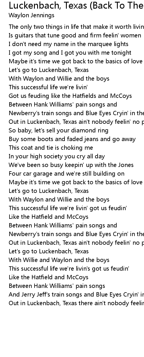 Luckenbach, Texas (Back To The Basics Of Love) Lyrics