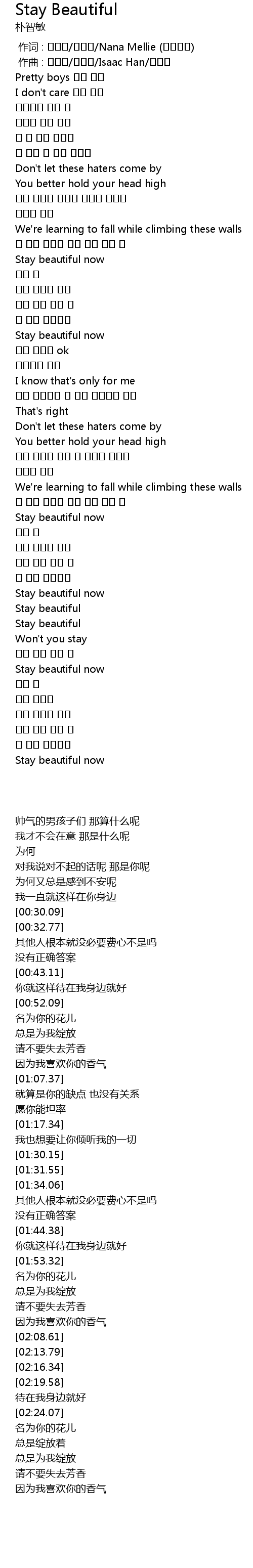 | [01:47.77] | 넌 그냥 이대로 옆에 있어 주면 돼 |