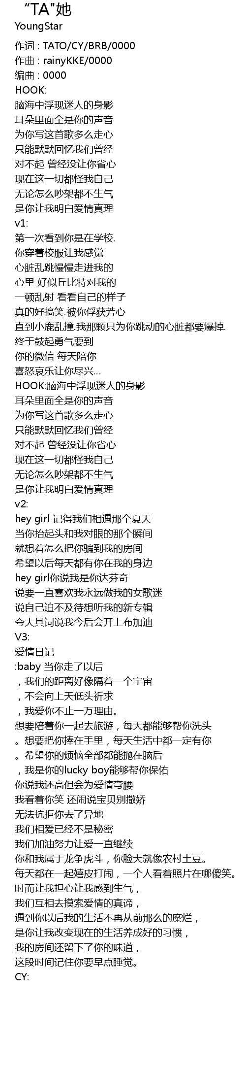 | 作词 : TATO/CY/BRB/0000 | |