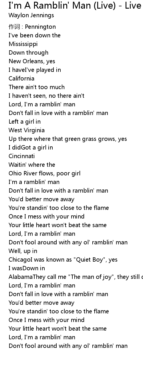 | Song | I'm A Ramblin' Man (Live) - Live |