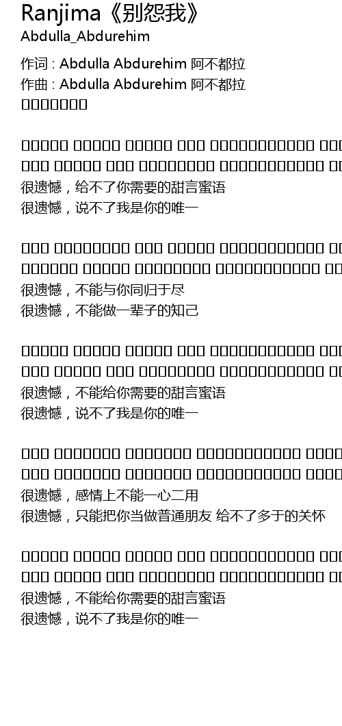 | 作词 : Abdulla Abdurehim 阿不都拉 | |