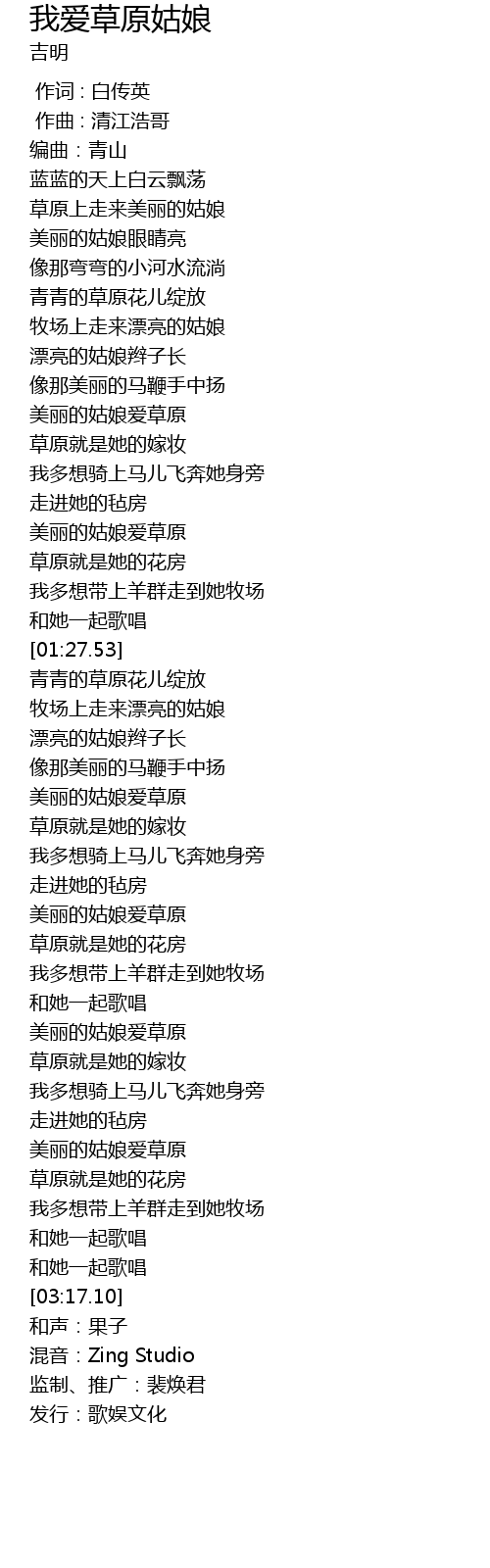 | [02:01.06] | 美丽的姑娘爱草原 |