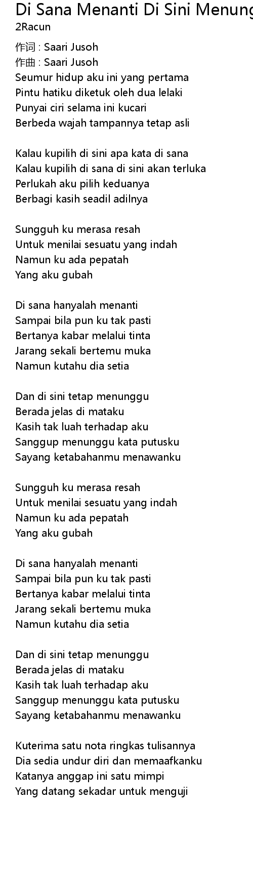 | Song | Di Sana Menanti Di Sini Menunggu |
