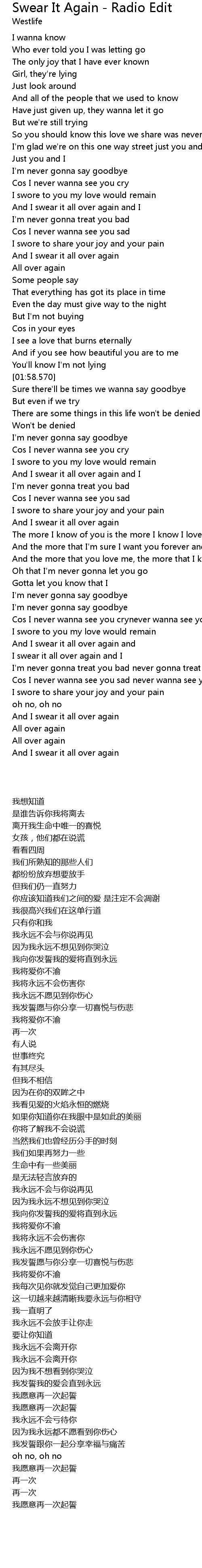 I swear it all over again and I |