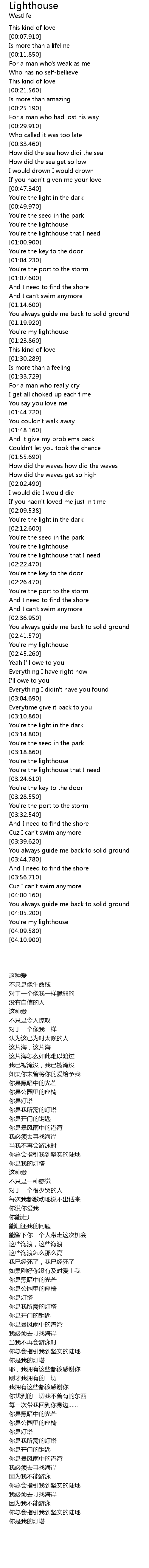 | [03:21.500] | You're the lighthouse that I need |