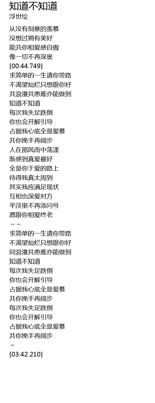 | [00:50.719] | 不渴望灿烂只想跟你好 |