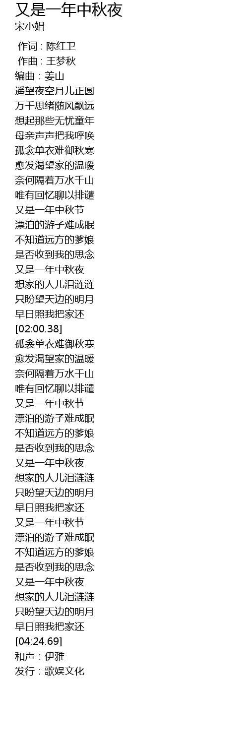 | [04:00.54] | you shi yi nian zhong qiu ye |