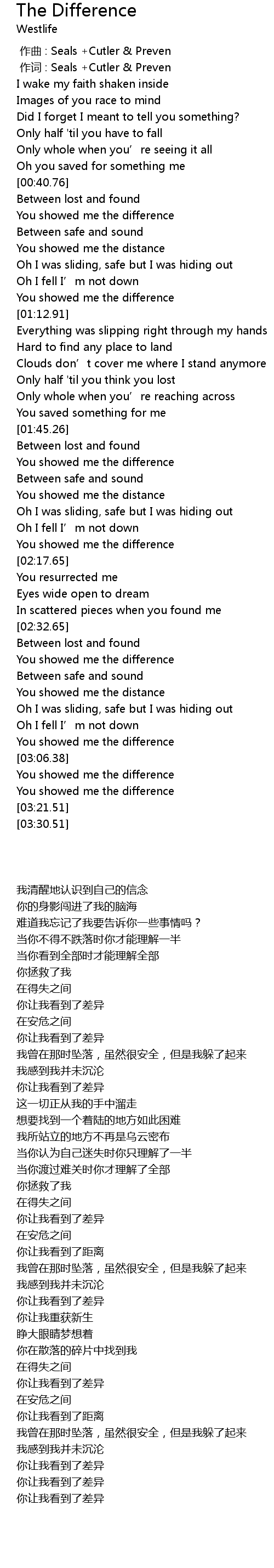 | [00:01.00] | 作词 : Seals +Cutler & Preven |