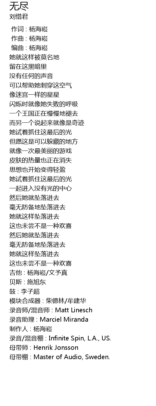 | [04:30.375] | 制作人 : 杨海崧 |