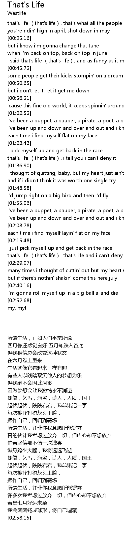 | [00:13.35] | that's life (that's life), that's what all the people say |