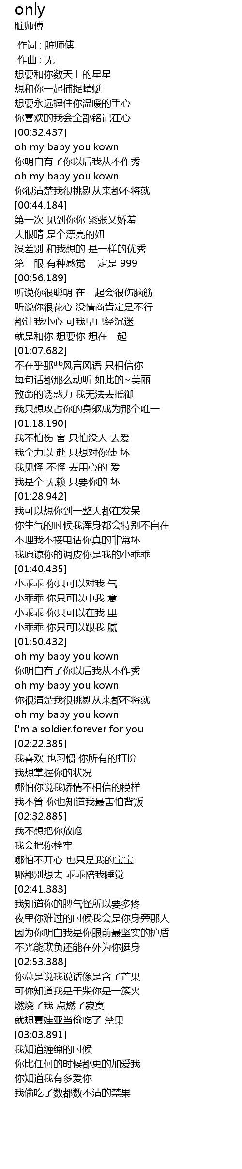 | [01:15.694] | 我只想攻占你的身躯成为那个唯一 |