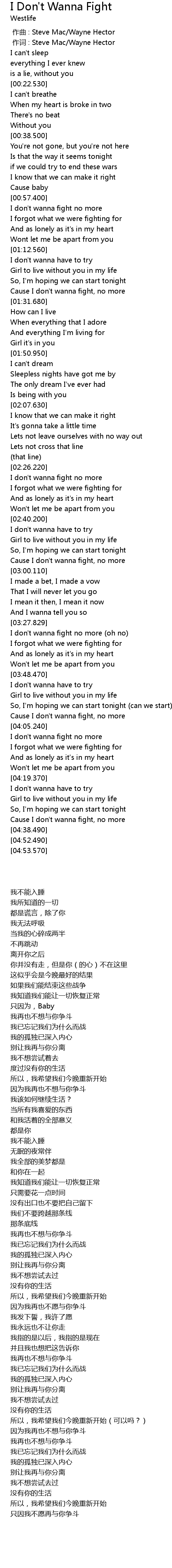 | [03:59.740] | Cause I don' t wanna fight, no more |