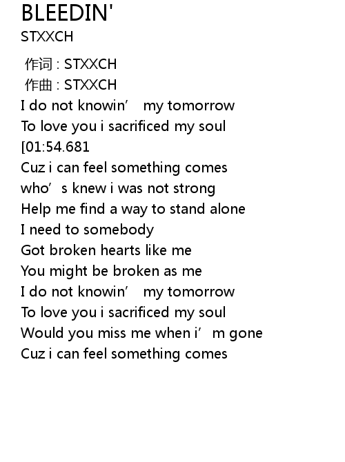 | [00:00.000] | 作词 : STXXCH |