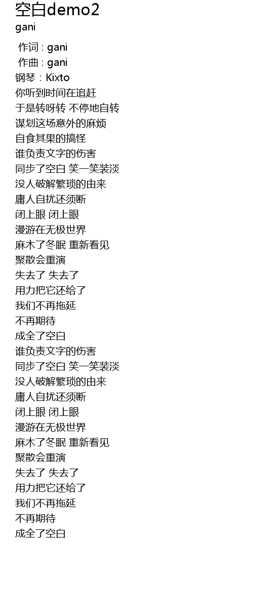 | [00:00.000] | 作词 : gani |