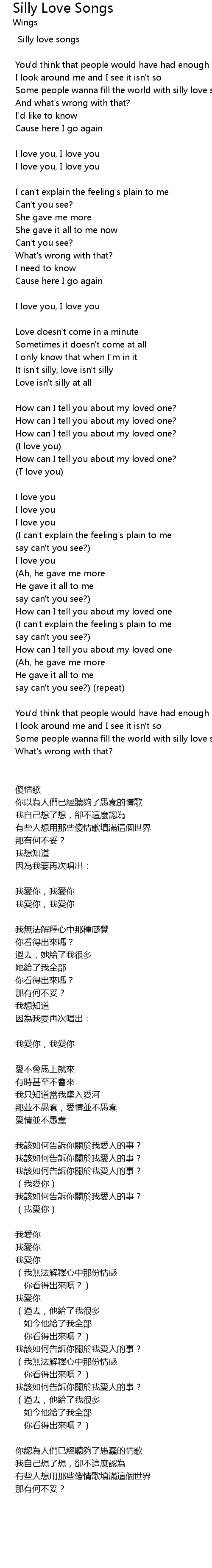 | Silly love songs | |