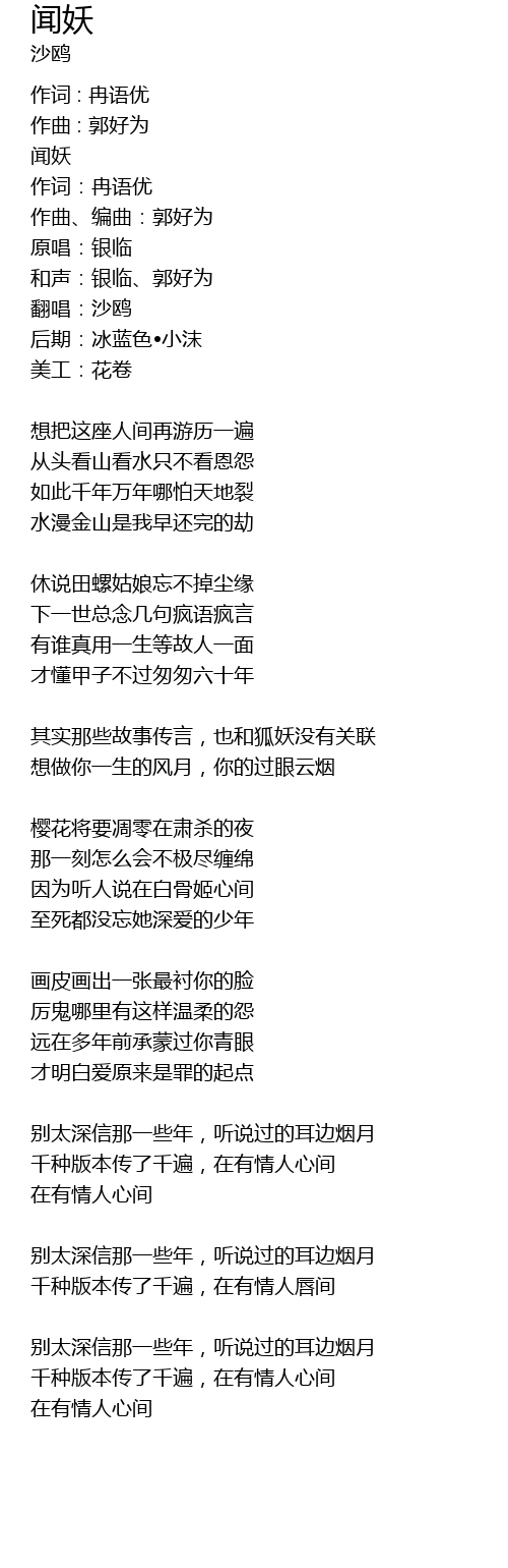 | 其实那些故事传言,也和狐妖没有关联 | |