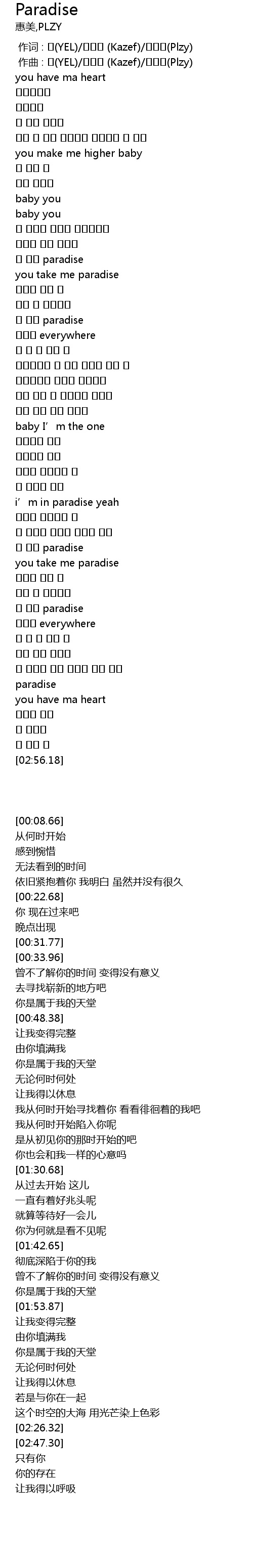 | [02:00.26] | paradise |
