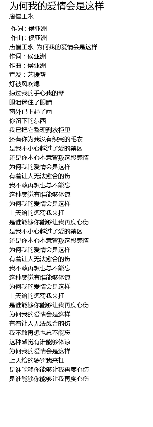 | [00:00.00] | 唐僧王永-为何我的爱情会是这样 |