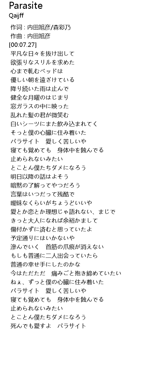 | [02:50.73] | パラサイト 愛しく苦しいや |