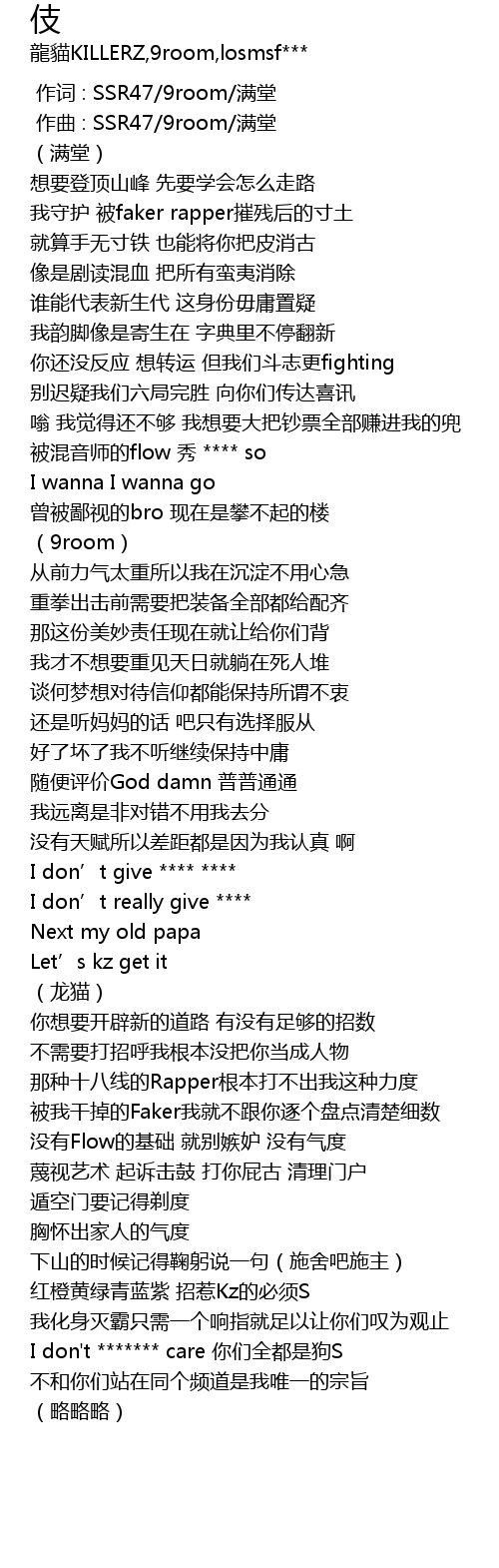 | [00:22.425] | 我守护 被faker rapper摧残后的寸土 |