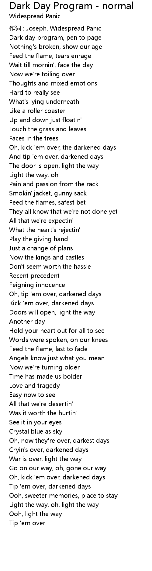 | 作词 : Joseph, Widespread Panic | |