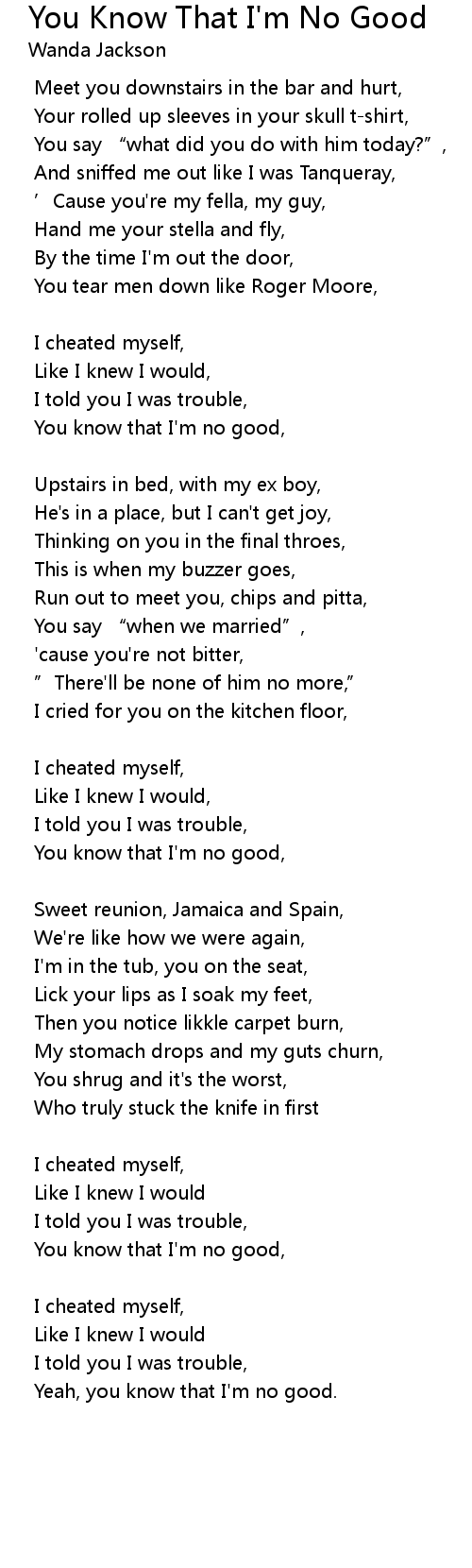 | You know that I'm no good, | |