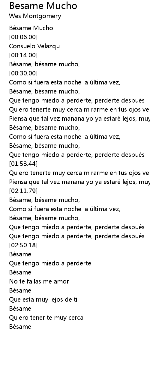 | [02:03.46] | Piensa que tal vez manana yo ya estare lejos, muy lejos de ti |