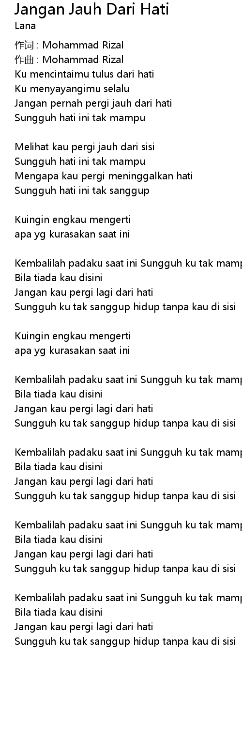 | Kembalilah padaku saat ini Sungguh ku tak mampu | |