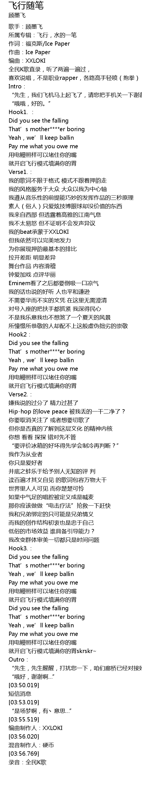| [00:02.253] | 喜欢说唱,不是职业rapper,各路高手轻喷(抱拳) |