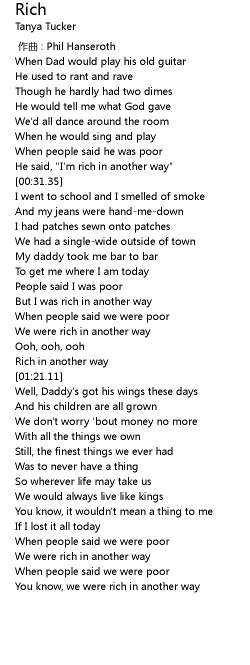 | [01:41.20] | Well, Daddy's got his wings these days |