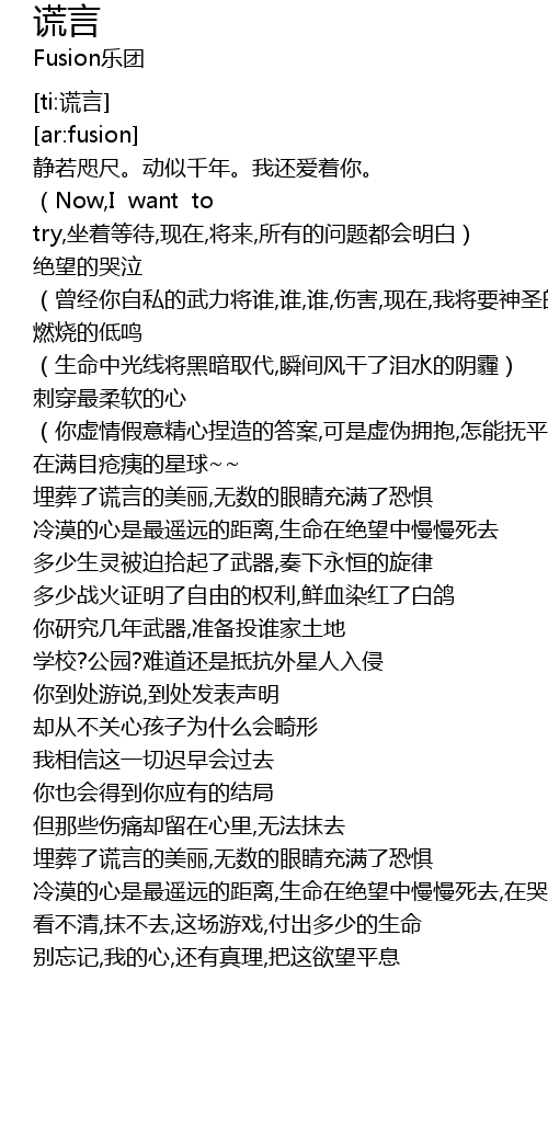 | [01:01.60] | 埋葬了谎言的美丽,无数的眼睛充满了恐惧 |