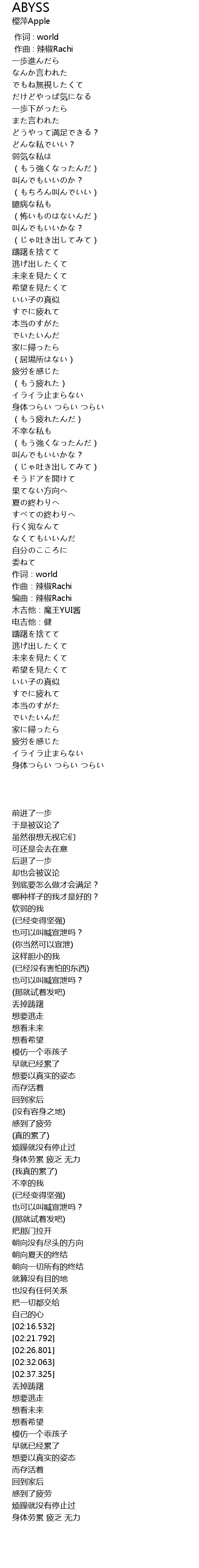 | [02:16.532] | 作词:world |