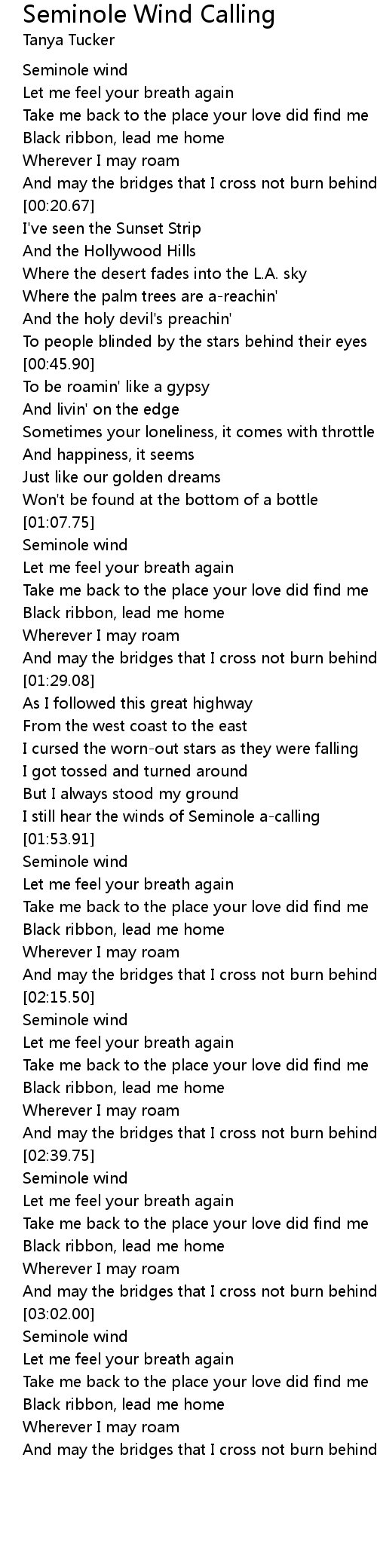 [03:03.00] Seminole wind