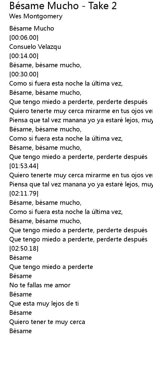 | [02:28.69] | Bésame, bésame mucho, |