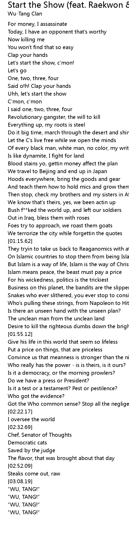 Start the Show (feat. Raekwon & RZA) Lyrics
