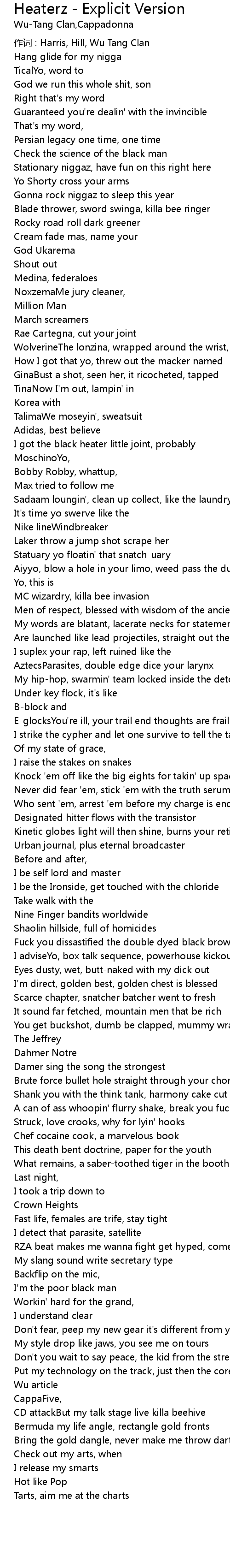 | 作词 : Harris, Hill, Wu Tang Clan | |