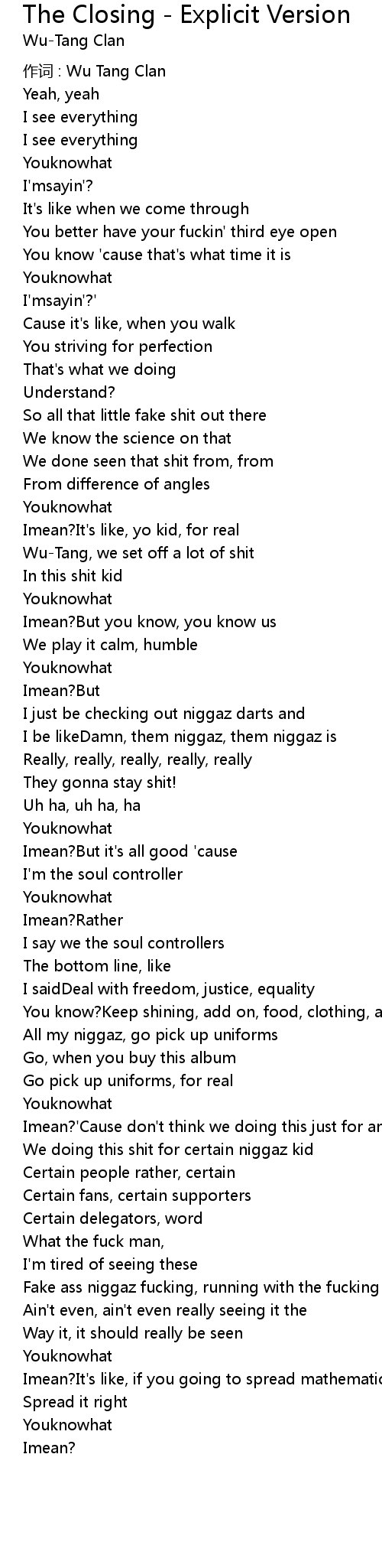 | 作词 : Wu Tang Clan | |