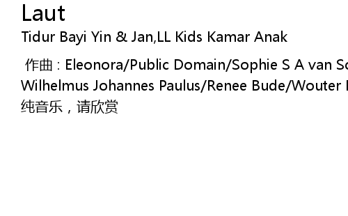 | [00:00.00] | 作曲 : Eleonora/Public Domain/Sophie S A van Schaik/Emerson Wilhelmus Johannes Paulus/Renee Bude/Wouter Budé |