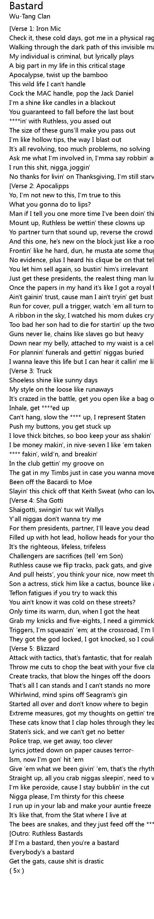 Ruthless cause we flip tracks, pack gats, and give slices |