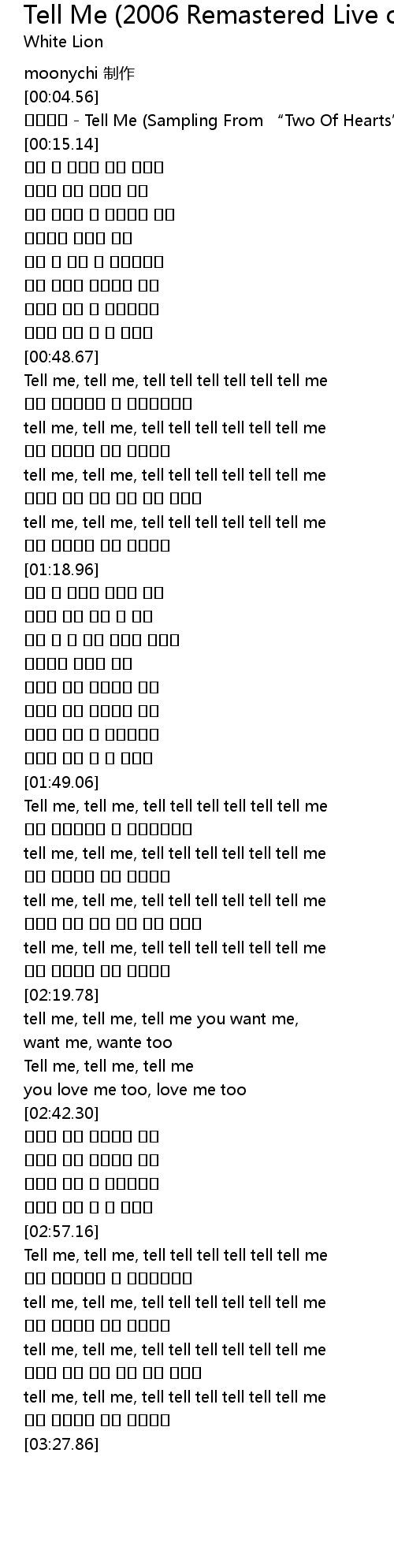 | [03:05.14] | tell me, tell me, tell tell tell tell tell tell me |