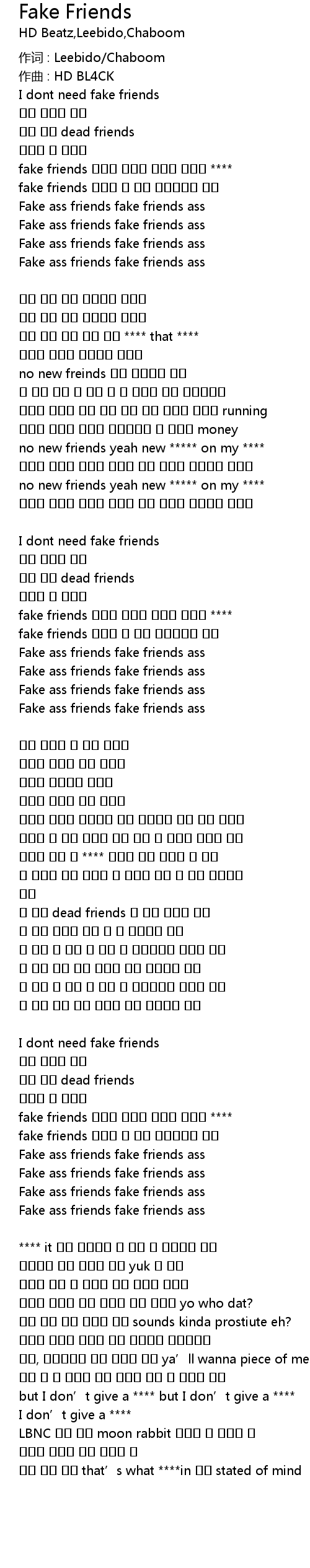 fake friends 우리는 안 믿어 뱀새끼들은 빙신