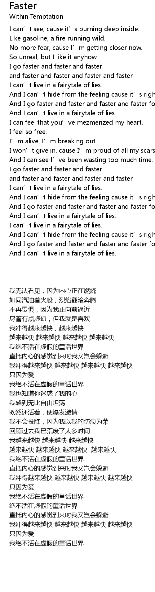 | Song | Faster |