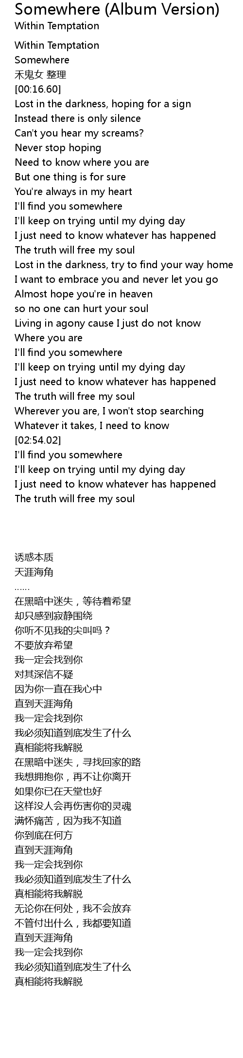 | [02:34.44] | Wherever you are, I won' t stop searching |