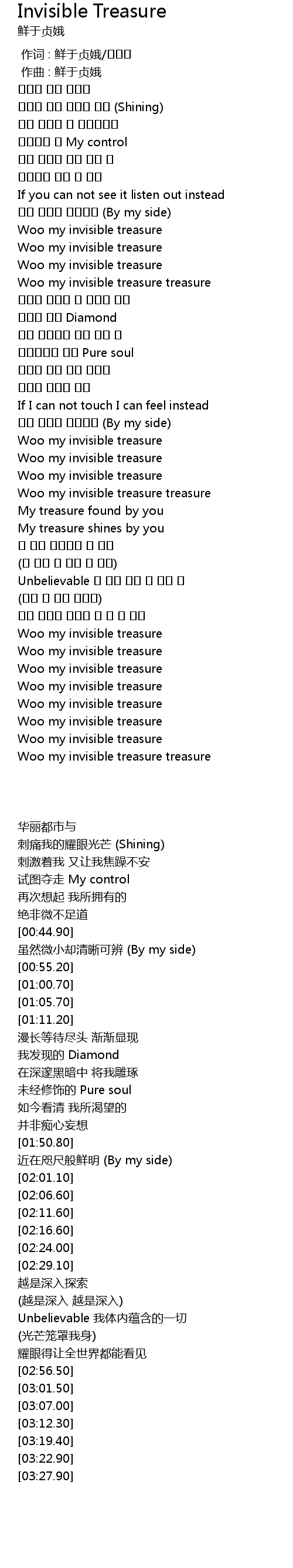 | [03:27.90] | Woo my invisible treasure |