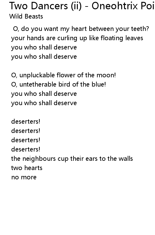 | Song | Two Dancers (ii) - Oneohtrix Point Never White Knights Remix |